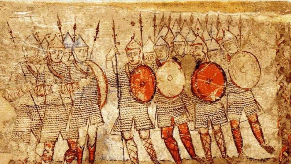 I Longobardi entrano in contatto con il mondo Romano durante la guerra greco-gotica. Nel 568, a causa delle pressioni degli Avari, si spostano verso sud e terminano la conquista dell'Italia settentrionale, impossessandosi anche di Toscana, Umbria e parte dell'Italia meridionale. I territori rimanenti restano sotto i bizantini e la penisola viene divisa in due tra Longobardi e Impero d'Oriente.