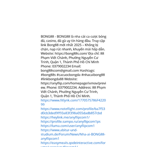 Website: https://anyflip.com/homepage/ixmov/preview. BONG88 - BONG88 là nha cái ca cược bóng đá, casino, đá gà uy tín hàng đầu. Truy cập link Bong88 mới nhất 2025 – Không bị chặn, nạp rút nhanh, khuyến mãi hấp dẫn. Website: https://bong88s.com/ Địa