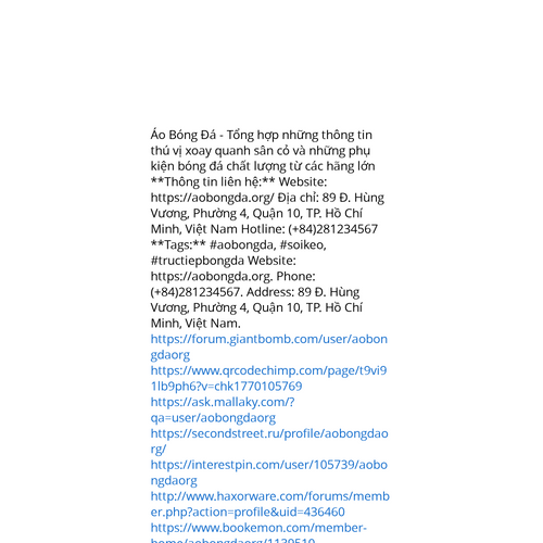 Website: https://aobongda.orghttps://aobongda.org Áo Bóng Đá - Tổng hợp những thông tin thú vị xoay quanh sân cỏ và những phụ kiện bóng đá chất lượng từ các hãng lớn **Thông tin liên hệ:** Website: https://aobongda.org/ Địa chỉ: 89 Đ. Hùng Vương, Phường 4, Quận 10, TP.