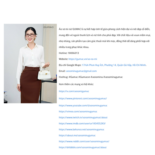 Áo sơ mi nữ GUMAC là sự kết hợp tinh tế giữa phong cách hiện đại và nét đẹp cổ điển, mang đến vẻ ngoài thanh lịch và nữ tính cho phái đẹp. Hotline: 18006013 Website: https://gumac.vn/ao-so-mi