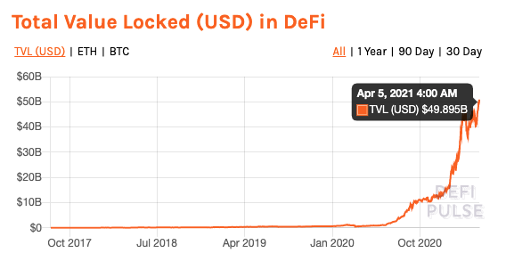 Figures are from DeFiPulse, April 5, 2021