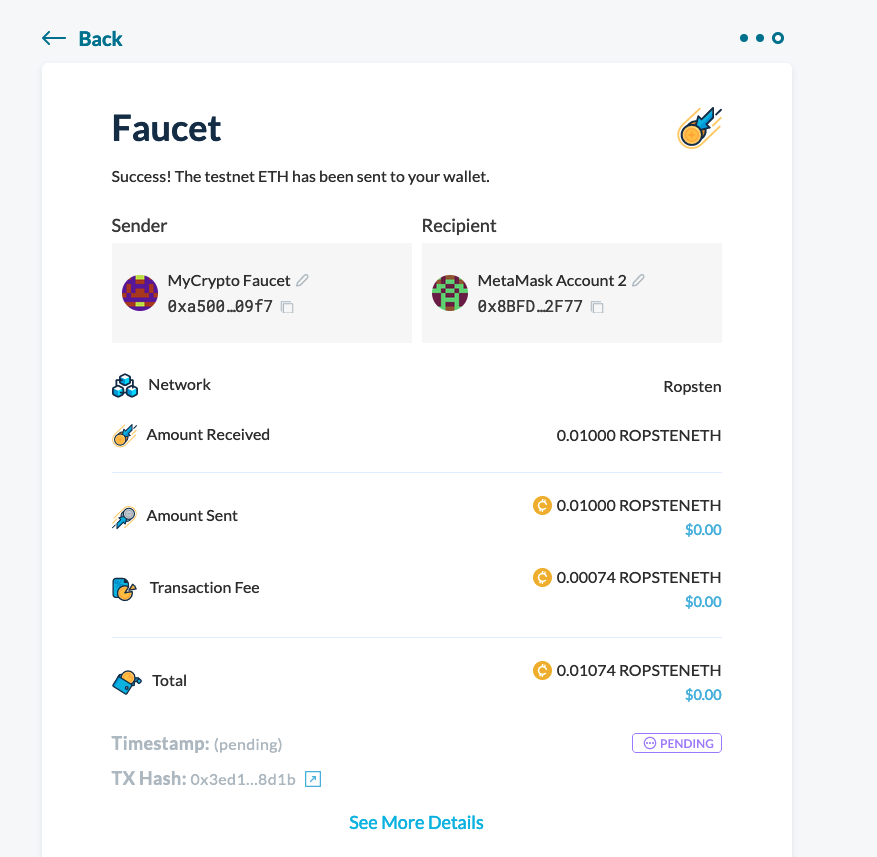 you will have received 0.01 ETH, visible now in your wallet app
