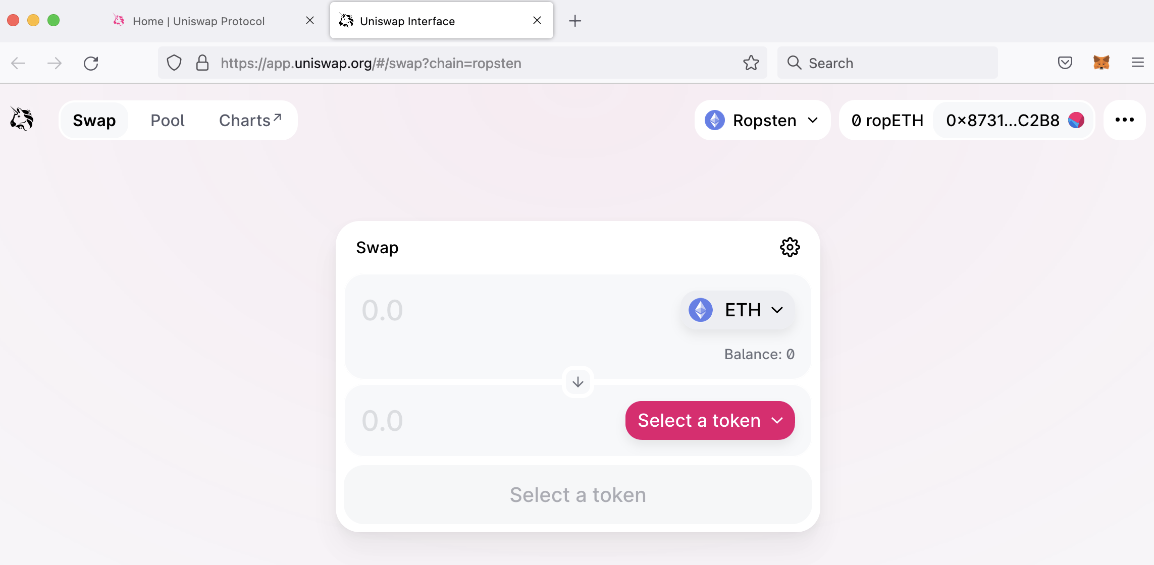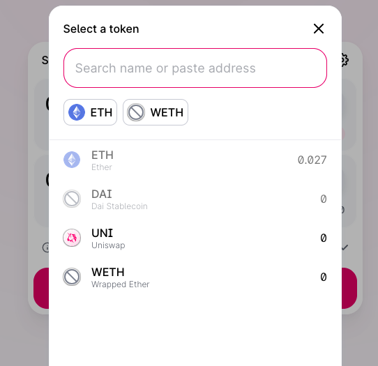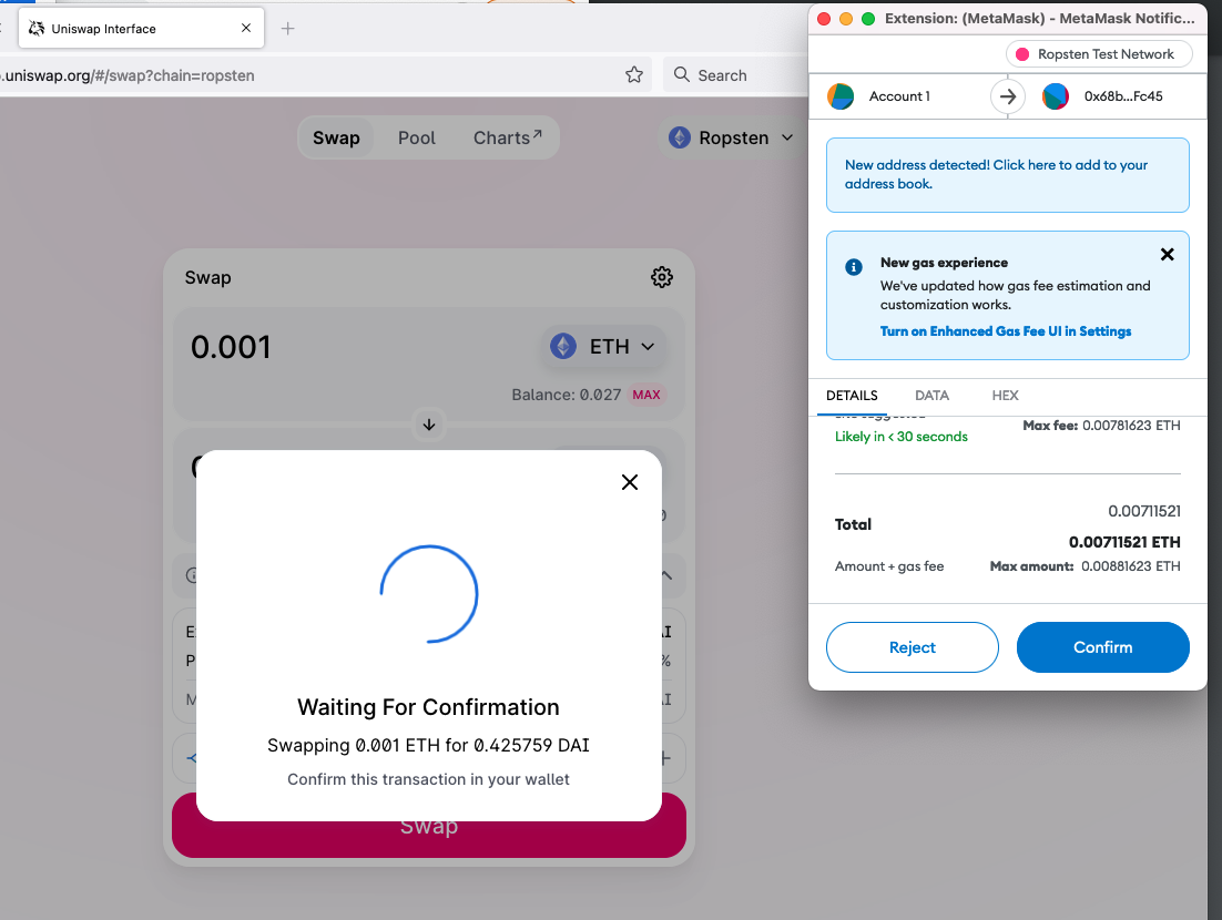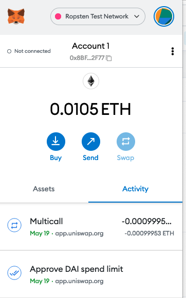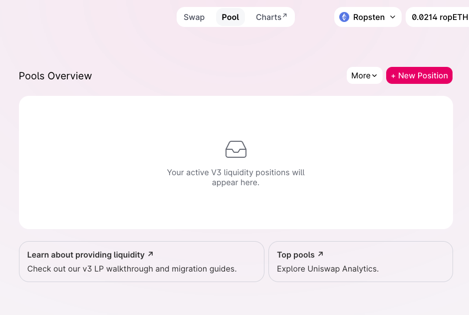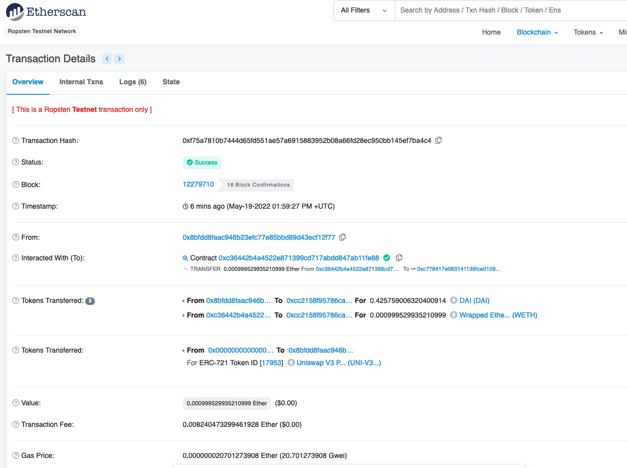 NB: you may want/have to request more ETH from the faucet and you may want to purchase some other tokens on UniSwap, such as the UNI token