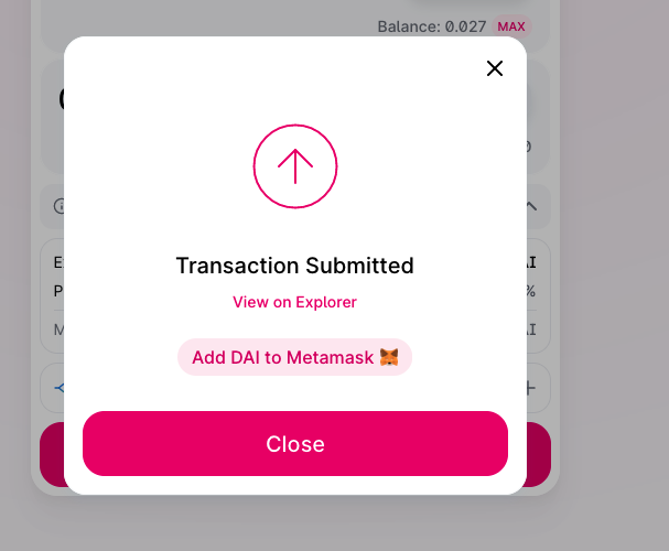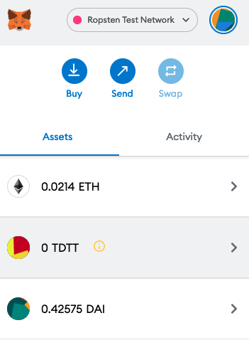 \(\to\) click on add DAI to Metamask