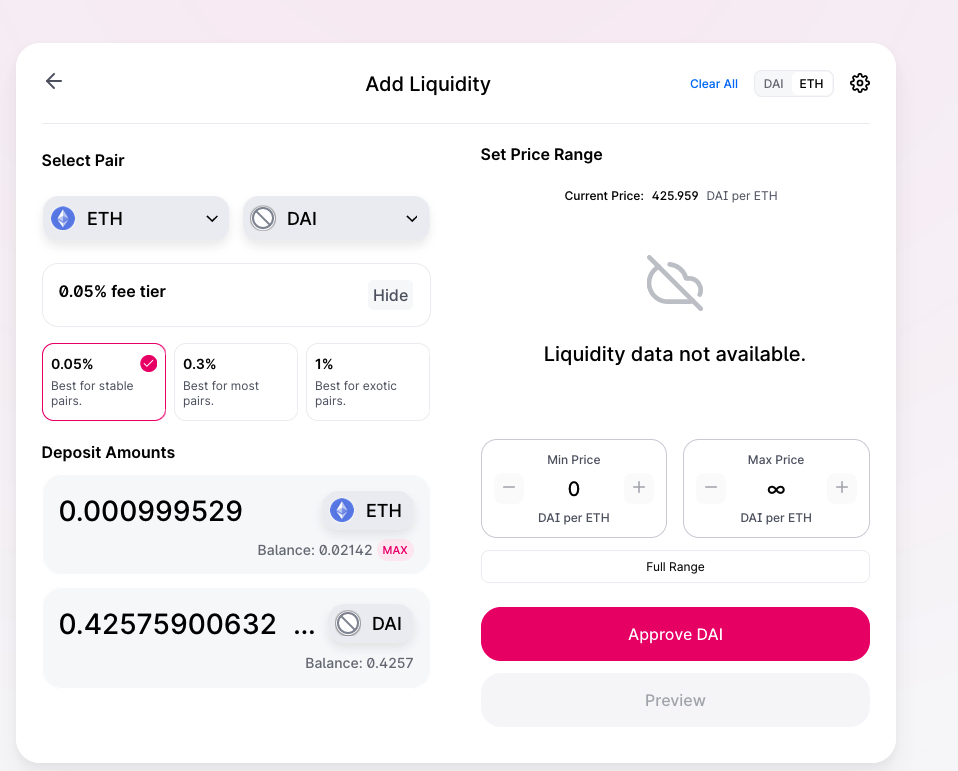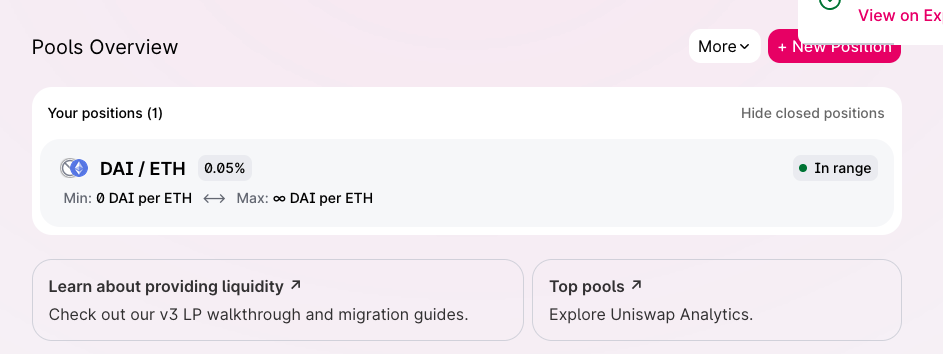 Part 1 of advanced dabbling: we will now put our ETH and DAI to good use and become UniSwap liquidity providers
