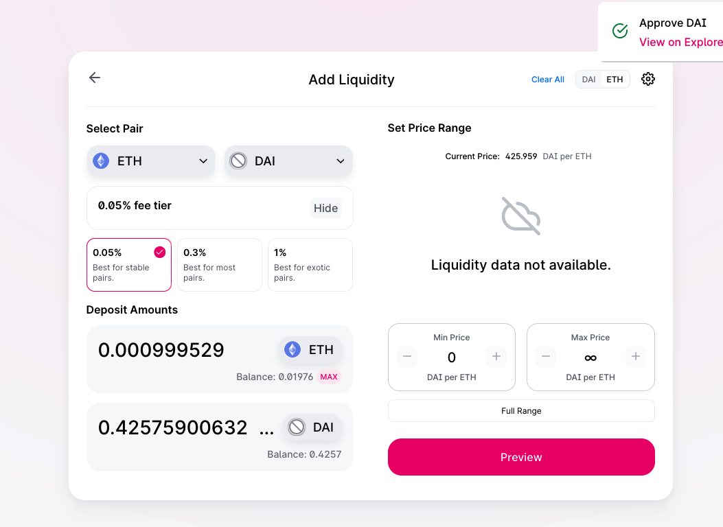 you are now ready to supply liquidity: