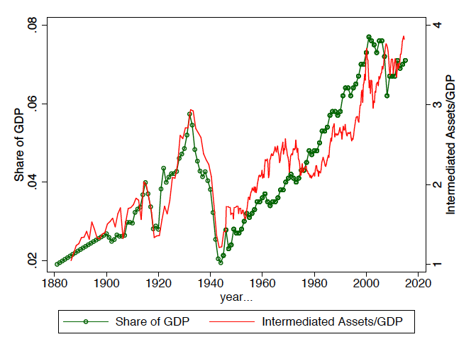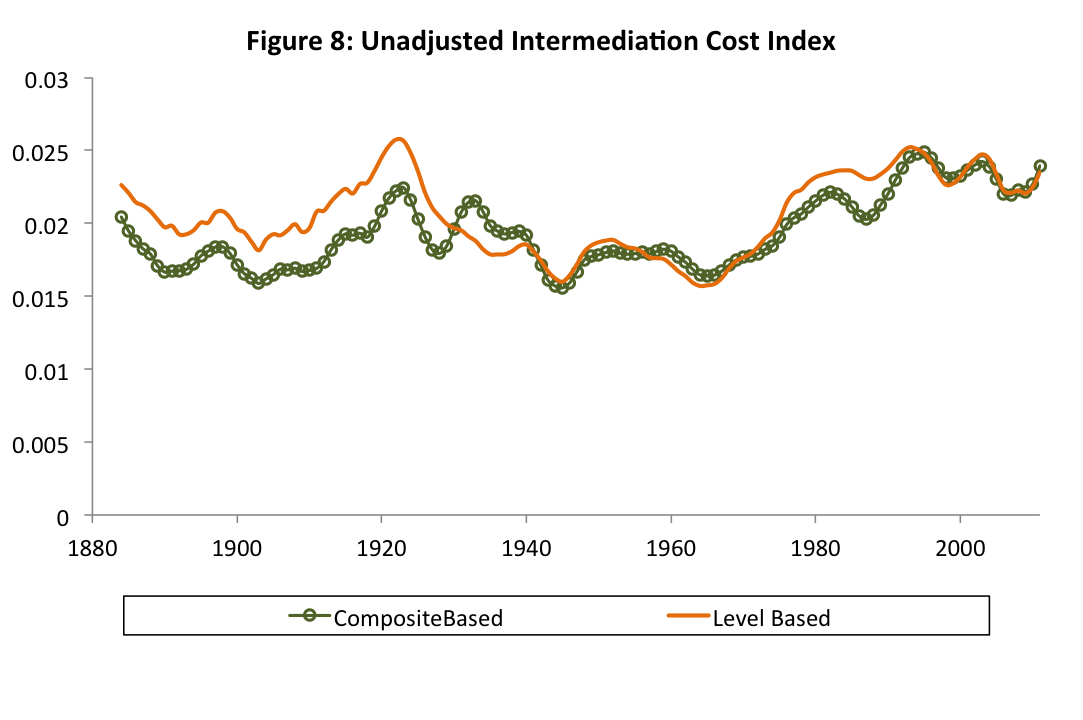 Source: Philippon (AER 2015) "Has the U.S. Finance Industry Become Less Efficient?"