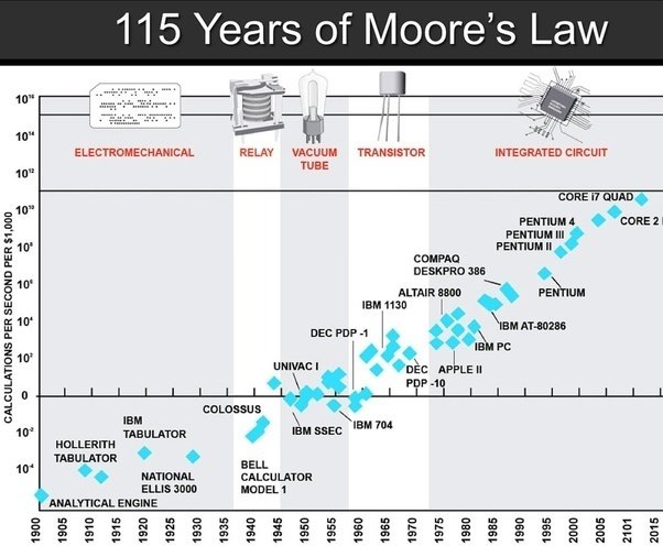"the number of transistors per square inch on integrated circuits had doubled every year since their invention."