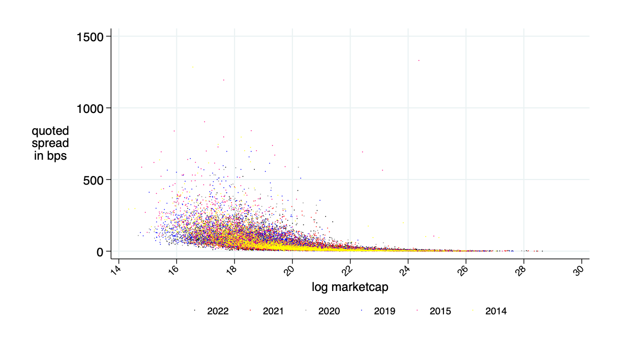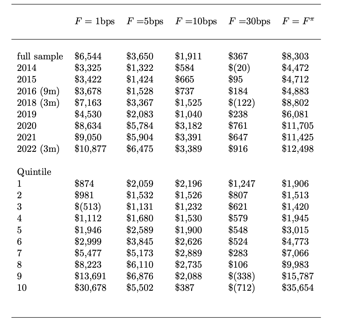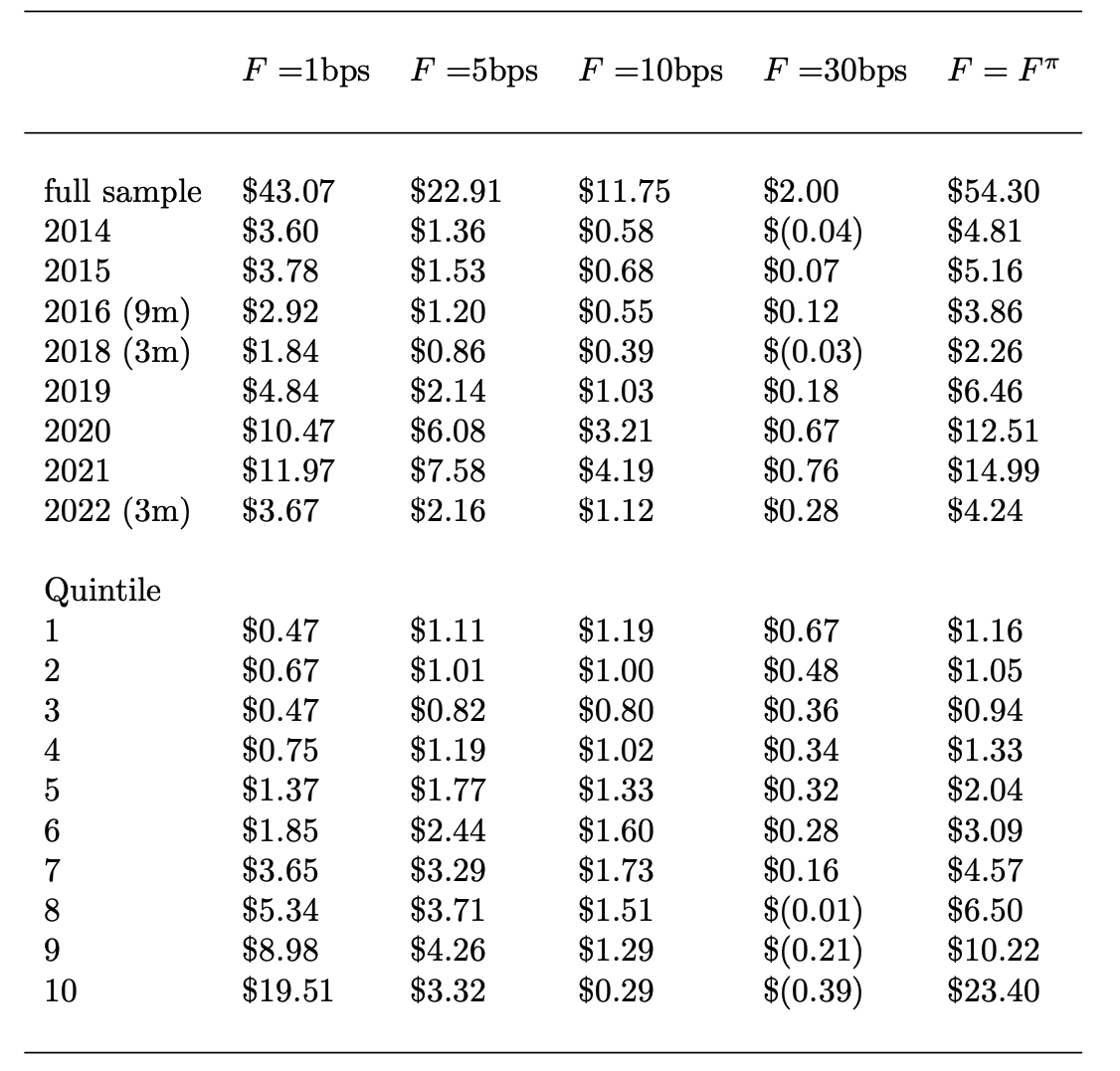Hasbrouck, Rivera, and Saleh (2022): higher fee \(\Rightarrow\) higher volume