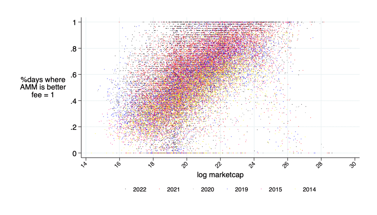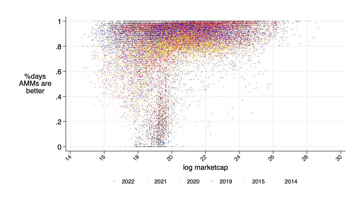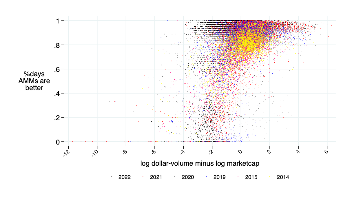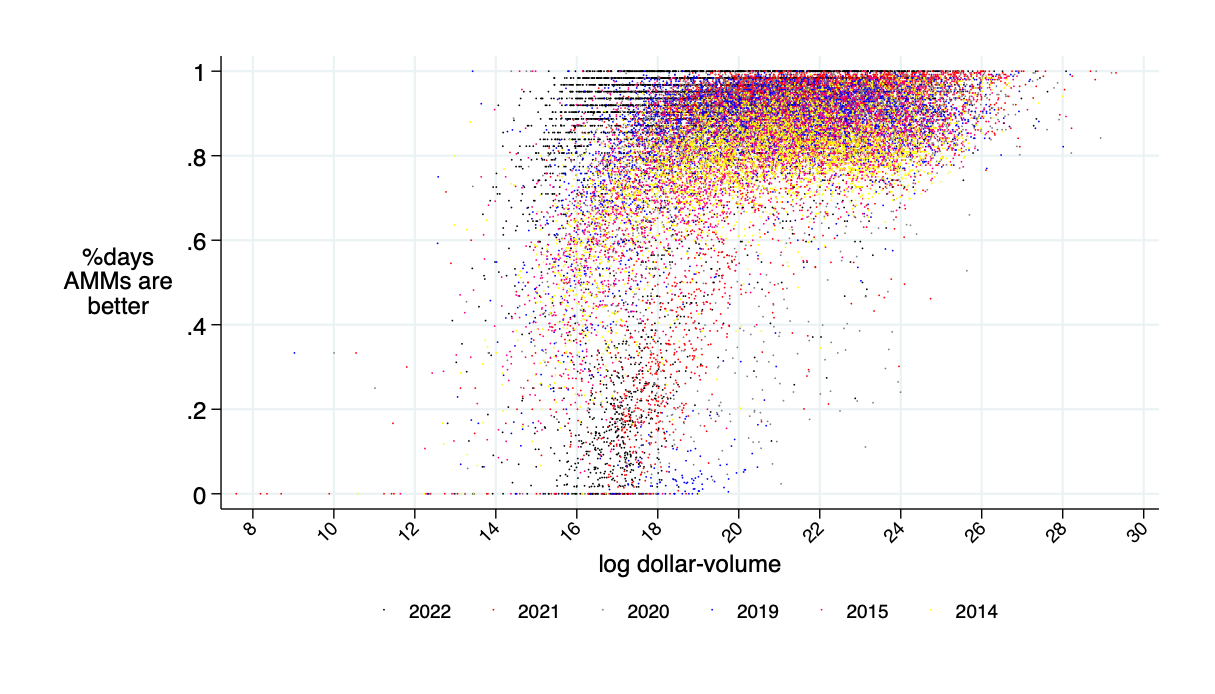 Lehar and Parlour (2021): for many parametric configurations, investors prefer AMMs over the limit order market.