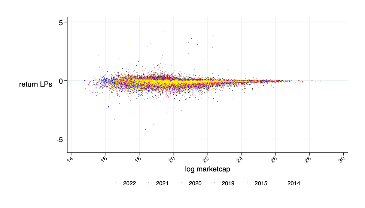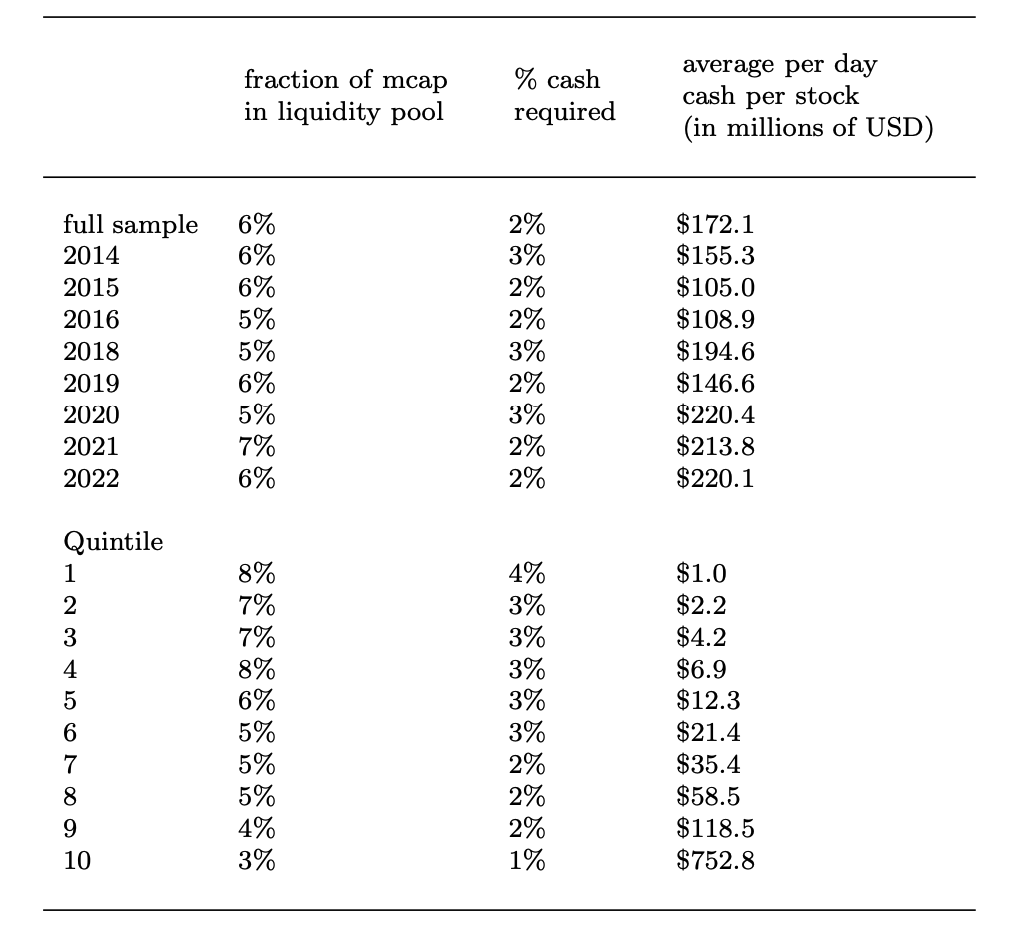 \(\approx\) 200 low-volume stocks (avg volume 20% of rest)
