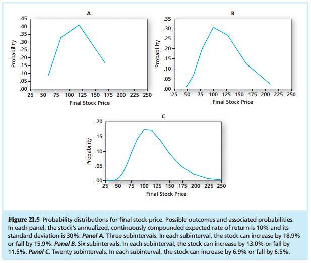 With more rounds/periods, the probability distribution of the final stock prices looks smoother and smoother.