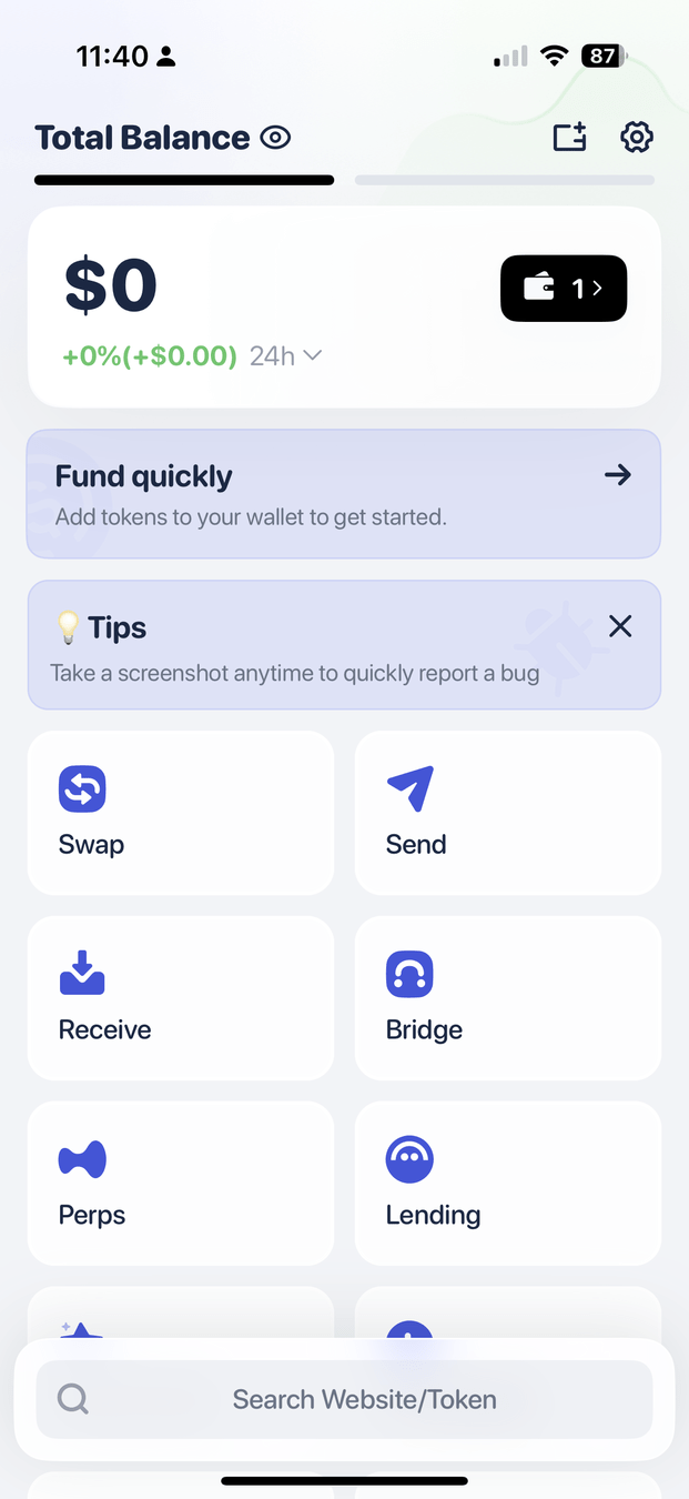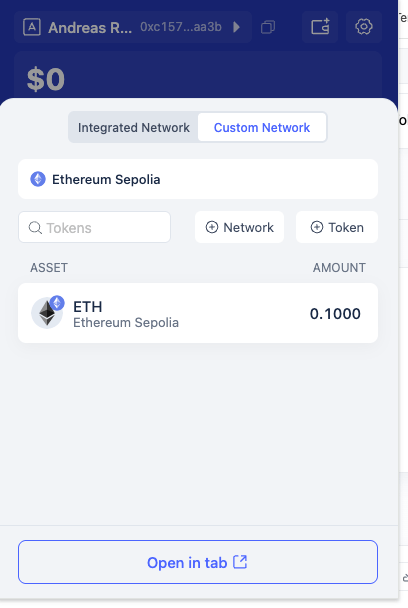 click on the symbol to see your wallet