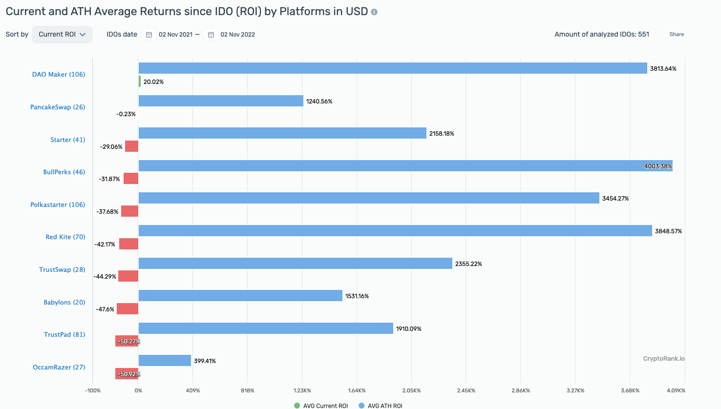 | count | Total Raised (M) | Mean Raised (M) | Mean ROI | Mean ATH ROI | |