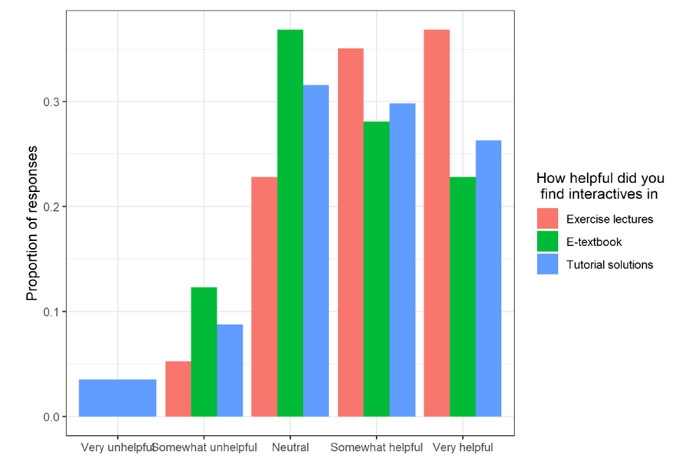 Likert scale question: "How helpful were interactive exercises?"