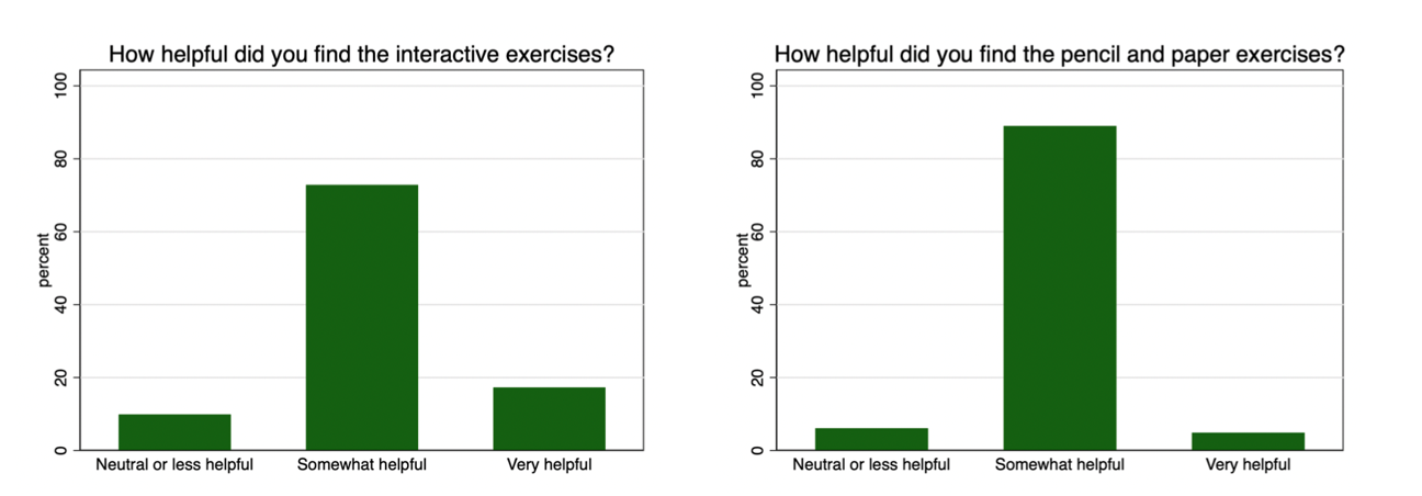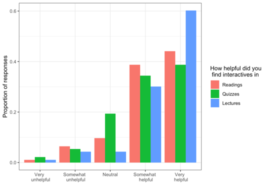 Likert scale question: "How helpful were interactive exercises?"