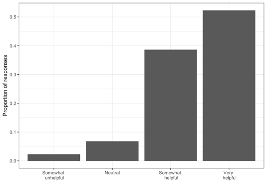 Students' comments coded on a scale from less to very helpful