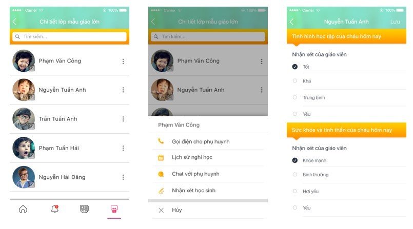 Nhận xét riêng từng học sinh với sổ liên lạc học sinh vSchools