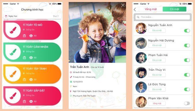 Thiết kế ứng dụng di động dành cho trung tâm dạy học, xưởng vẽ Tý Toáy với các tính năng hữu ích được phát triển dựa trên nhu cầu thực tế sử dụng. http://apecsoft.asia/ung-dung-di-dong-trung-tam-day-hoc-ve/