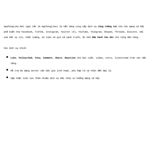 App tăng like bài viết Facebook, Tiktok, Instagram, Twitter, Threads, Youtube, Telegram uy tín, chất lượng, an toàn, giá rẻ và có bảo hành lâu dài.