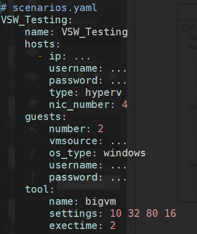 [Precondition] 1. 1 SUT is prepared for VSW testing 2. No VSW exists [Steps] 1. Go to VTC web console and log on as Administrator 2. Go to VTC > Scenarios 3. Click Add scenario button 4. Add scenario: - Scenario Name: "VSW_Tetting" - Add host: Add 1 host as prepared in precondition with correct IP, Username, Password, Hypervisor (HpyerV), and valid number of NIC (<= existing NIC number on the hosts) - Add guests: Number: 2 Perfect VM: provide valid perfect VM location OS type: Windows Username: valid username Password: valid password - Add Tools: Tool name: BigVM Settings: 10 32 80 16 Execution time (minutes): 2 5. Click Add button 6. Run the scenario 7. Go to VTC > Jobs 8. Verify the job execution result on VTC > Jobs > VSW_Testing 9. Remote to the host and verify the VSWs setup is successful |