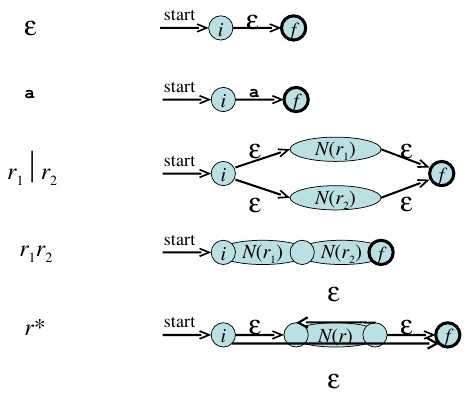 - Отдолу регулярният израз се свежда до краен недетерминиран автомат