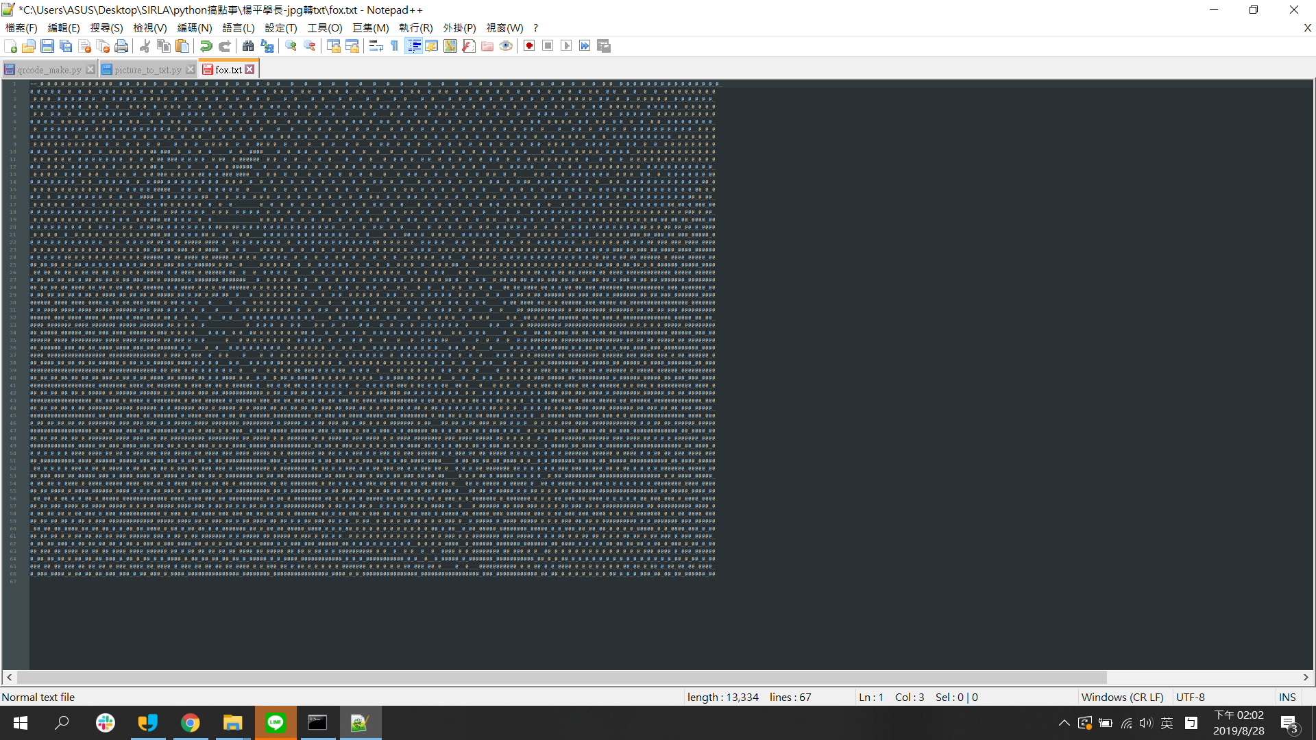 print('檔案儲存為[{}]'.format(namestr))8.將黑白圖片轉換成文字