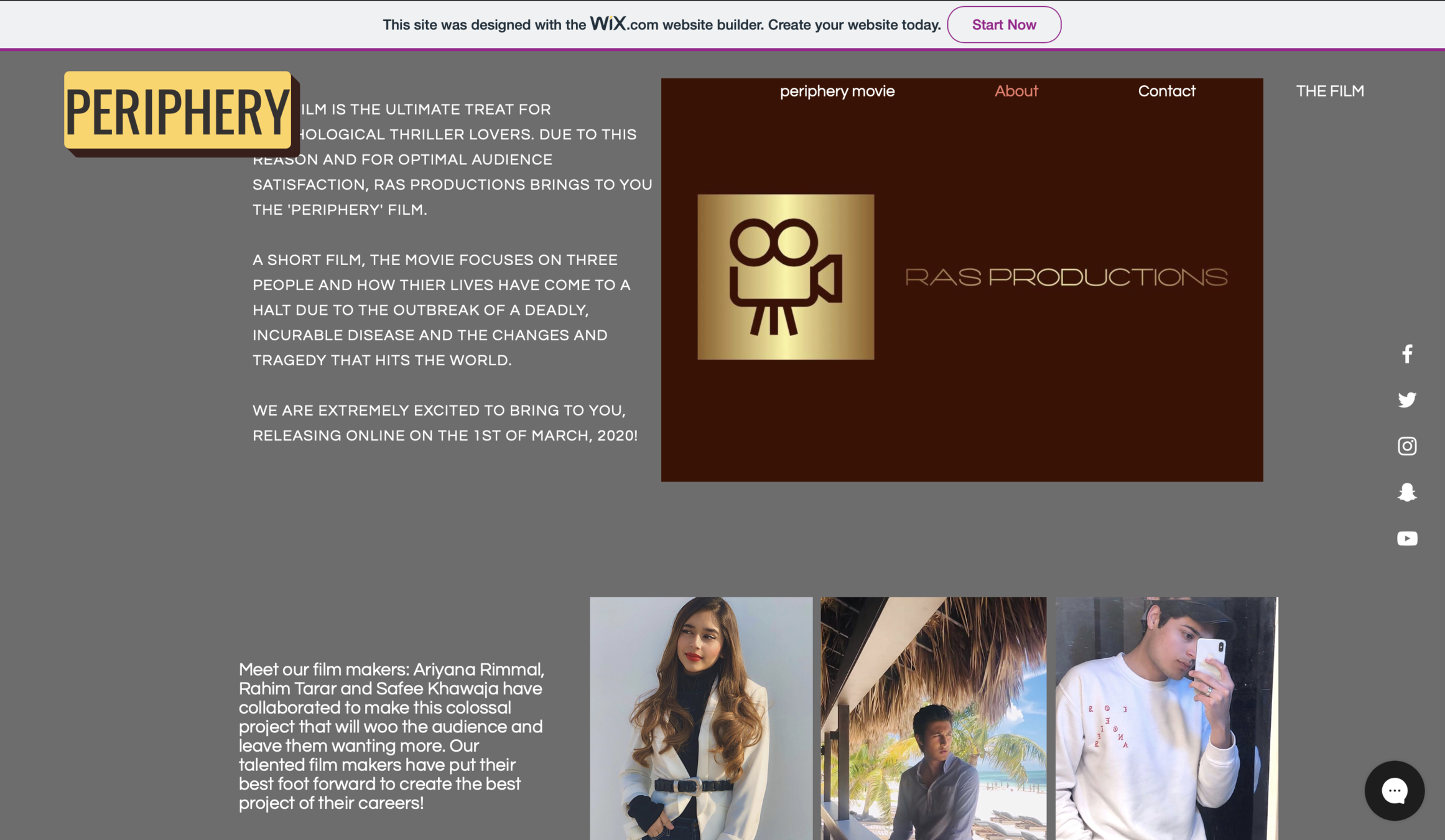 the website was made on wix.com. It contains sections like about the film, contact the film management and the film was also uploaded on the website for the audience to access.