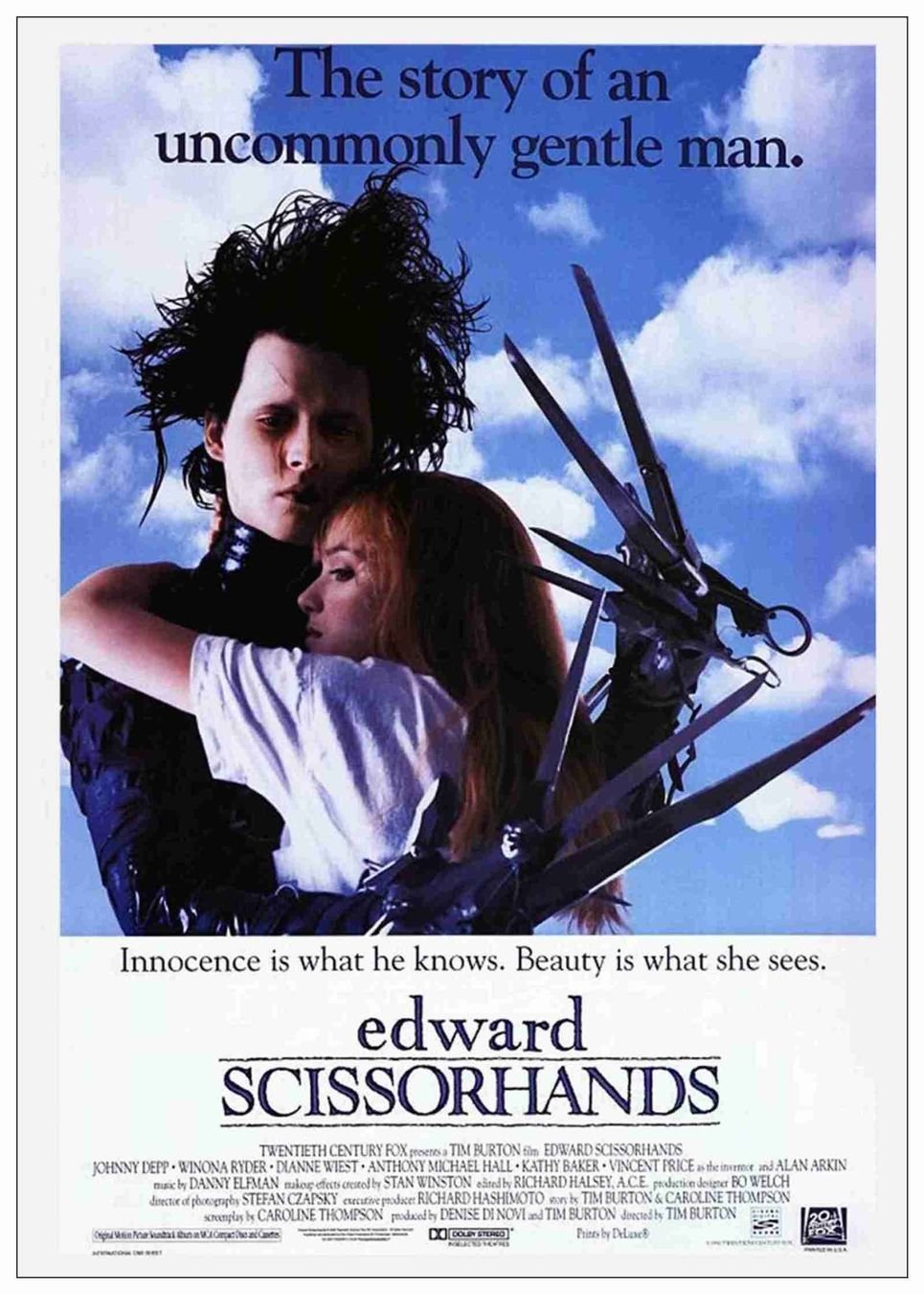 a very essential part of any movie poster is the famous tagline, like the one seen in the poster of 'Edward Scissorhands'.