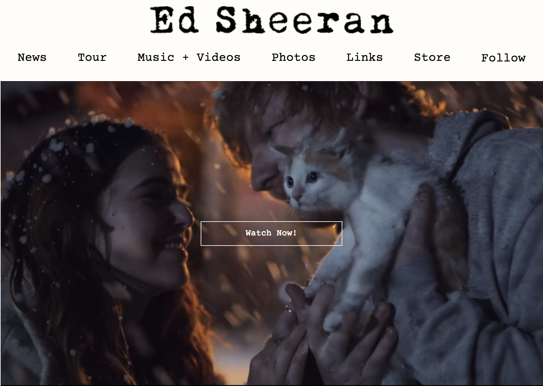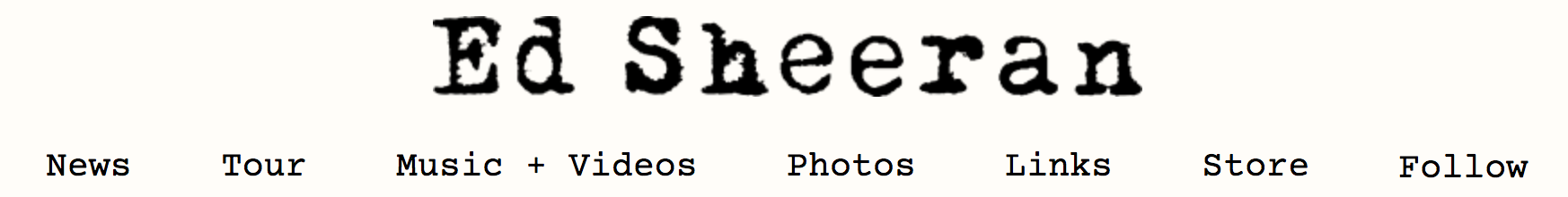 The official website of Ed-Sheeran has a very simple yet attractive layout of the home page. The web-address is vey easy for the fans to knows as it comprises of the artist's full name, i-e- www.esdhreean.com