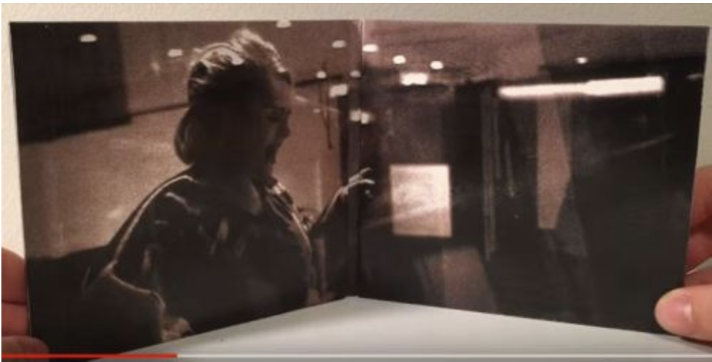 Inlay contains an image of Adele singing in an acoustic session wearing a formal dress. Here again the lighting is low key. The inlay overall gives a gloomy feeling too like the whole digipak does. We have found this inlay because a newspaper image has been taken which is a very unique style of inlay.