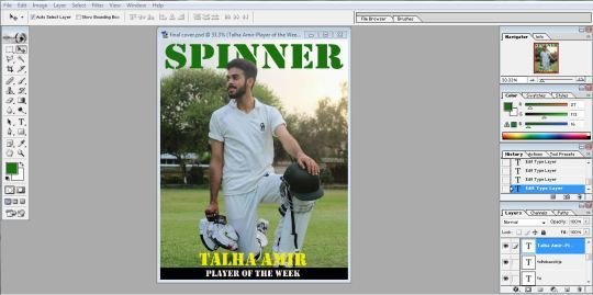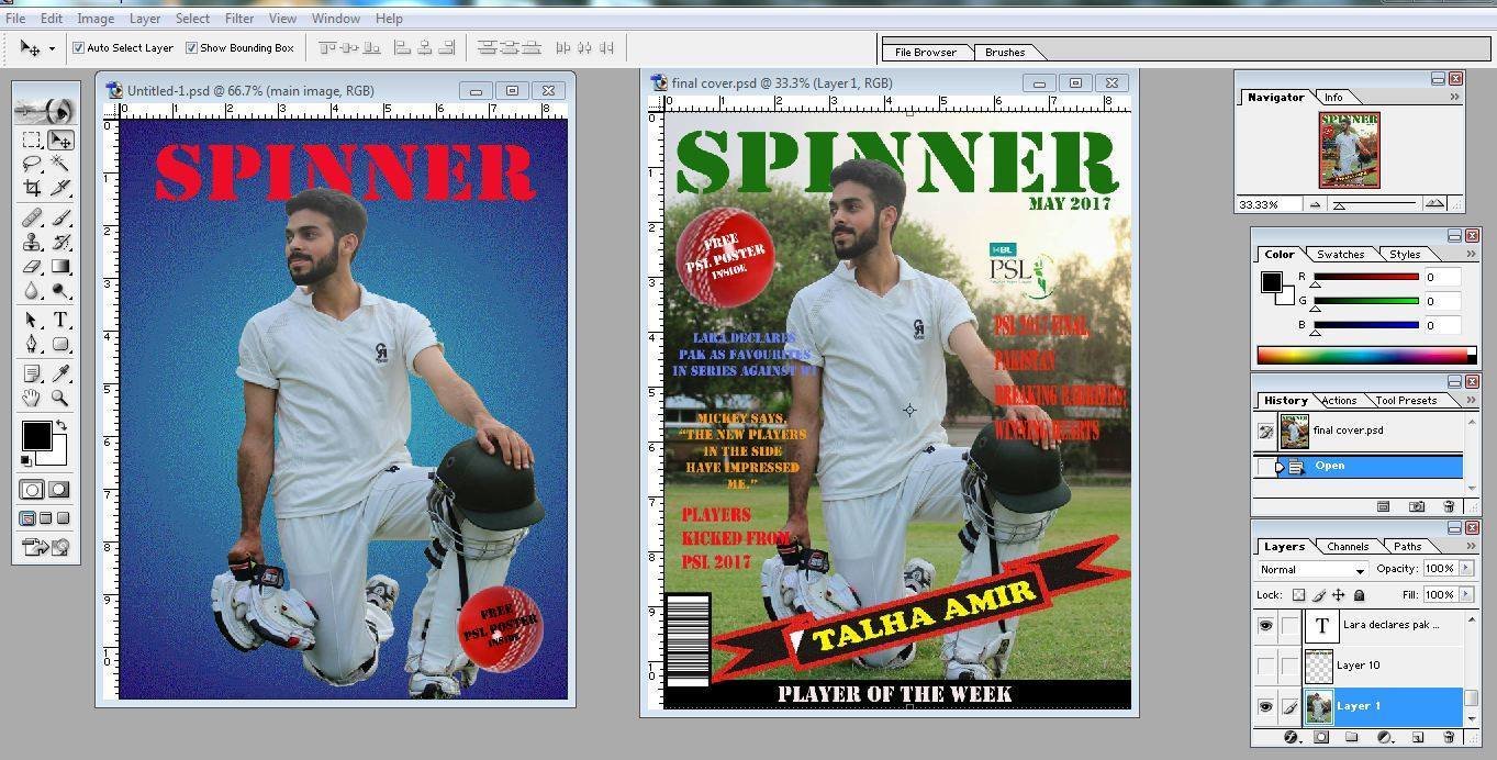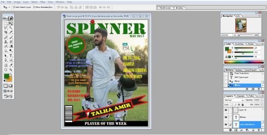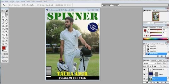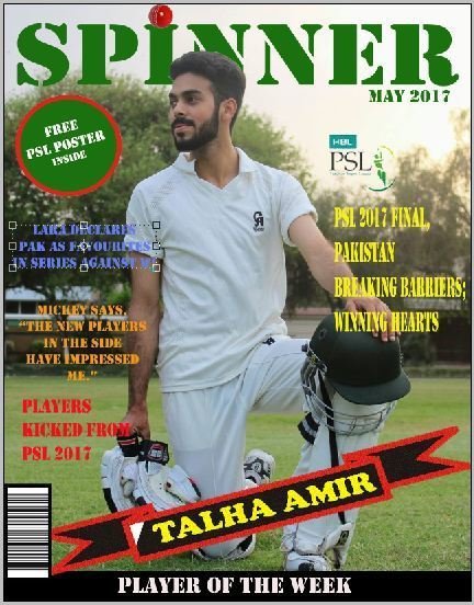 I made a puff more prominent by placing a different color out line around it. I also change the strip and gave it a more attractive look by using predefined shapes in adobe Photoshop. I also placed a cricket ball image an top of the mast head to make it look related to the sport of cricket. I added a couple of more images next to the tag lines. Now my cover page looked almost final.