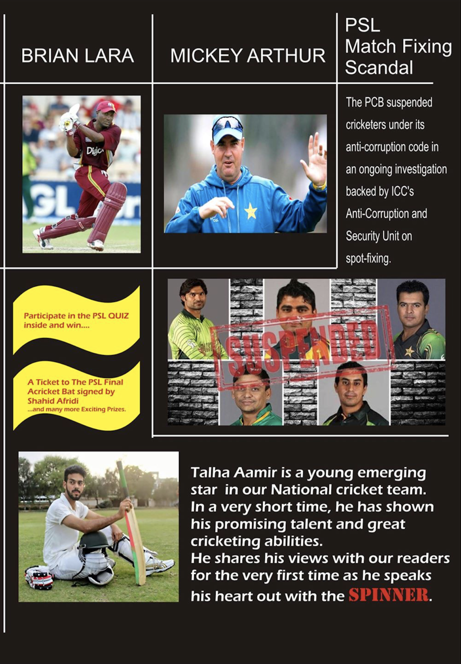 Then I added some more text and placed it to where it belong. This was to show what the magazine had in it. like on the left side i added the PSL teams names and on the right down the corner I wrote about the player Talha Aamir. Also at the end of the paragraph I wrote SPINNER in the red by using the same fount style and the color which I used before in the cover page