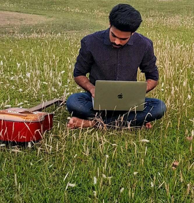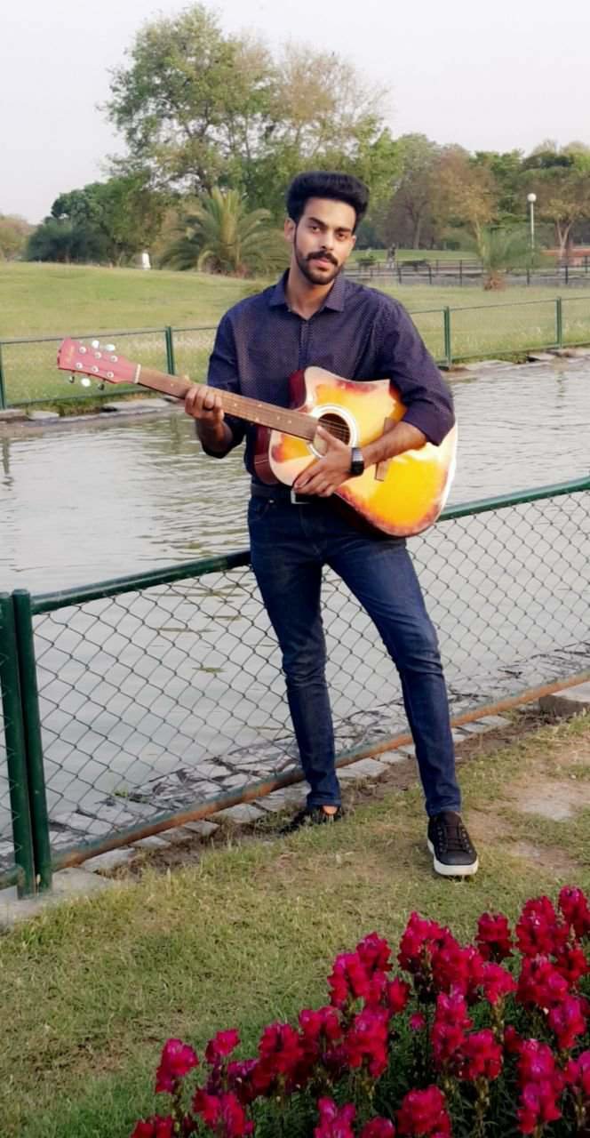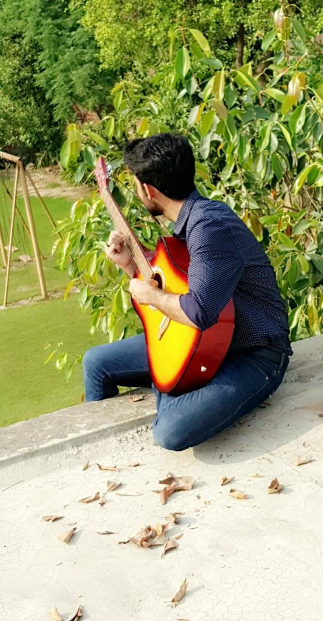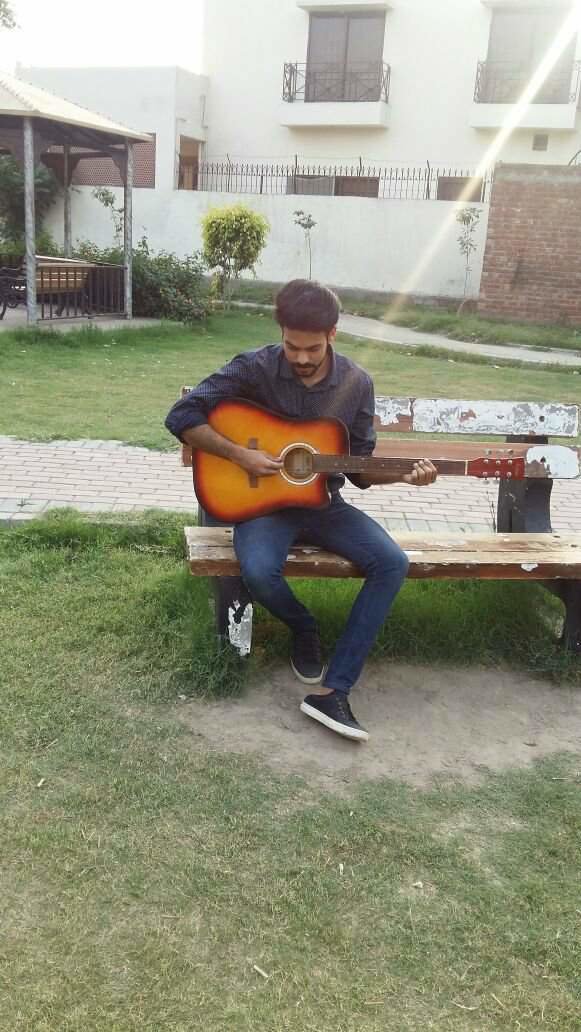 This image was captured during our shoot in the Model Town park. Though it was a random click I though about adding this image as the artist was playing guitar, and looked against it as the background was not a very nice me and my artist's view was not a very clear one as he had his face downwards and it was a distance shot too.