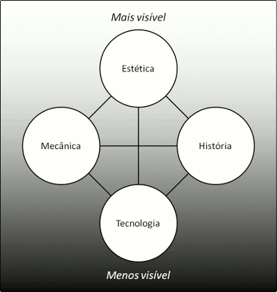 " ... história contada pelo jogo, seus personagens e o relacionamento entre eles, o ambiente e o contexto do mundo virtual. Através dela podemos definir qual a motivação do jogador em concluir o jogo, como rivais em busca de um objetivo comum ou um mistério para ser desvendado."