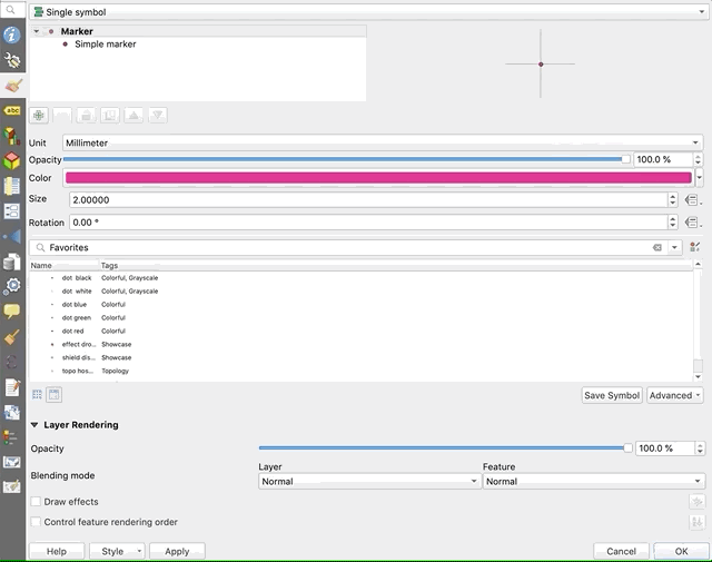 You can now style your marker by size and color. Pick a new color and increase the size to at least 4.00. Click on Apply and then OK.