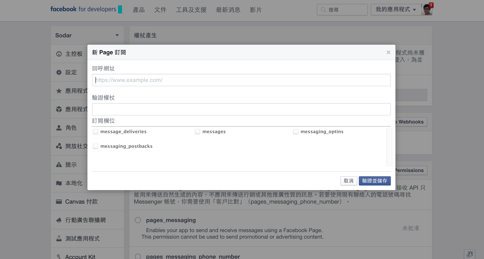 "https://graph.facebook.com/v2.6/me/subscribed_apps?access_token=<token>"Step 4.