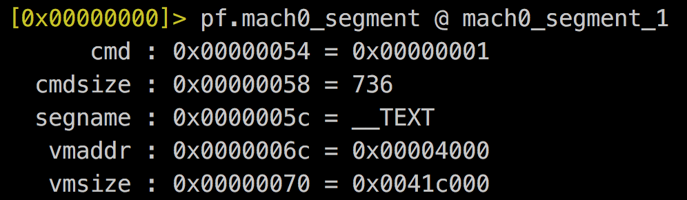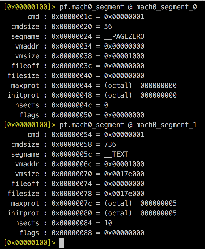 $pf obj=xxdz prev next size name #Define an "obj" struct (hexflag hexflag hex string)
