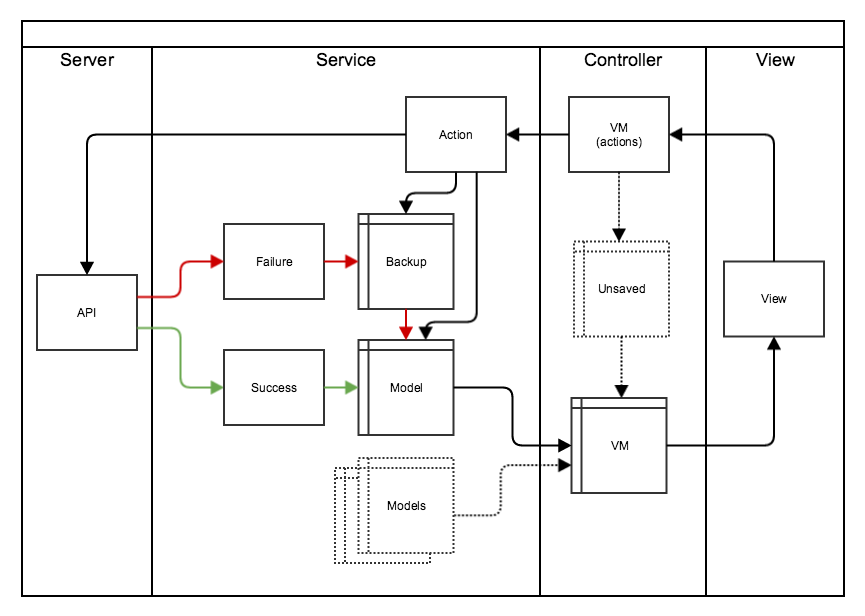 - Loading/pending and error states become a lot cleaner to deal with. It makes the viewmodel and view's job to display errors, rather than determine or store them.