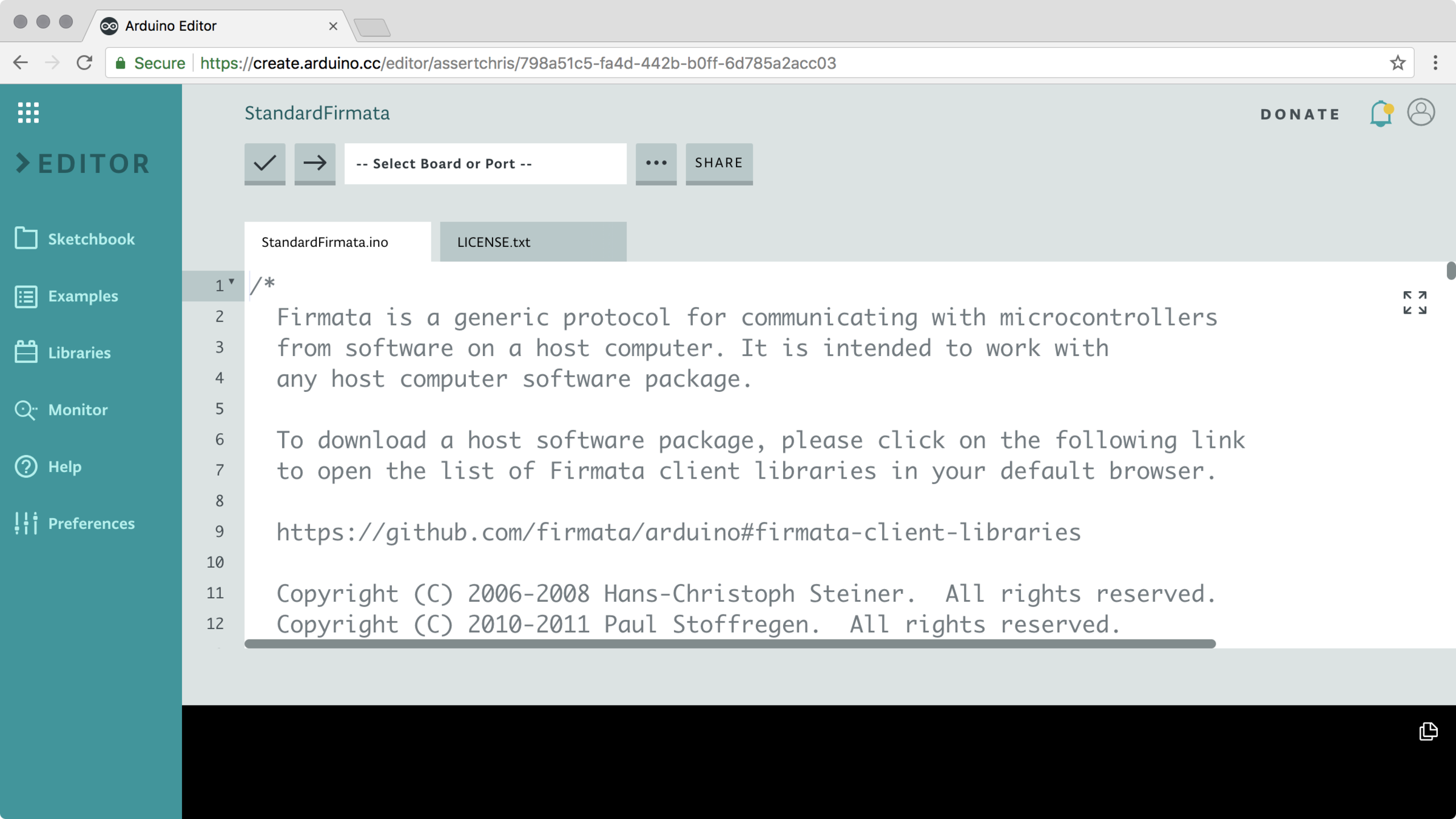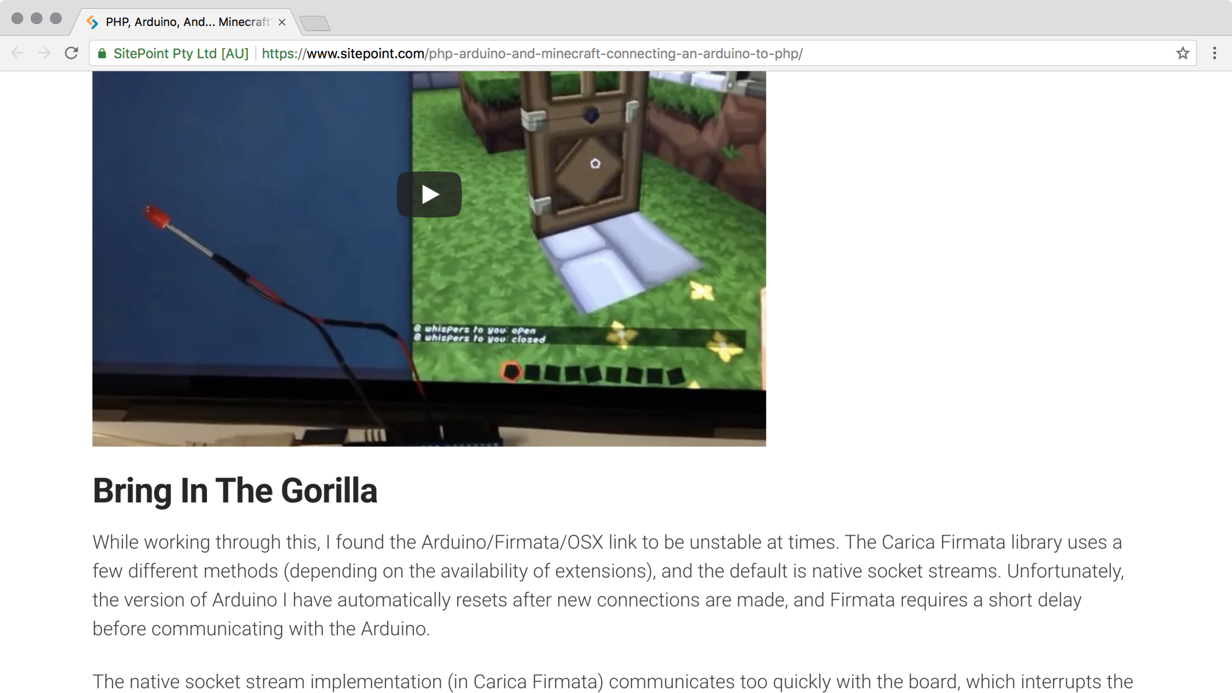 use Carica\Io; use Carica\Firmata; $board = new Firmata\Board( Io\Stream\Serial\Factory::create( "/dev/cu.usbmodem1441", 57600 ) );