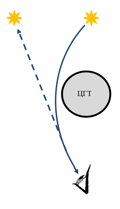 Искривление луча света вблизи ЦГТ