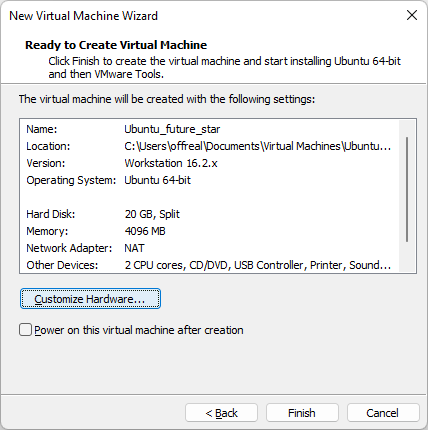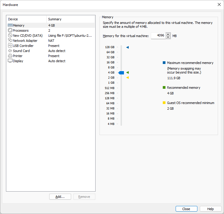 Если на вашем host-компьютере установлена память объемом 8 ГБ и более, выберитайте 4096 МБ