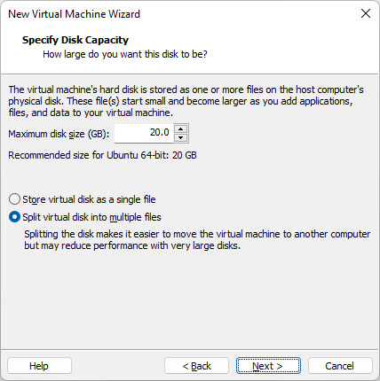 Выберите размер виртуального диска не менее 20 ГБ