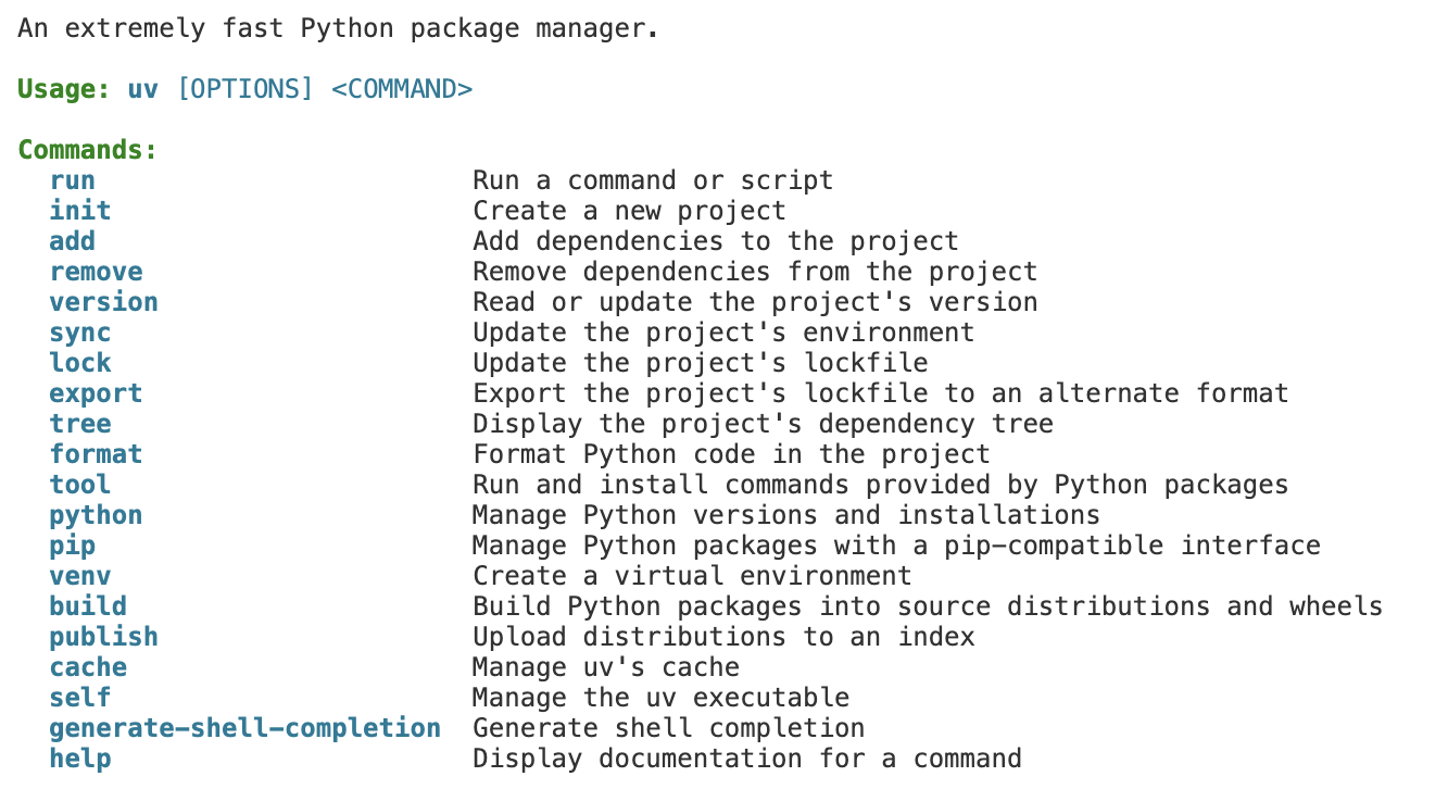 uv helpInstalling Python with uv