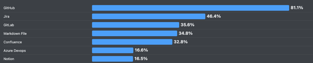 % developers using these code documentation and collaboration tools