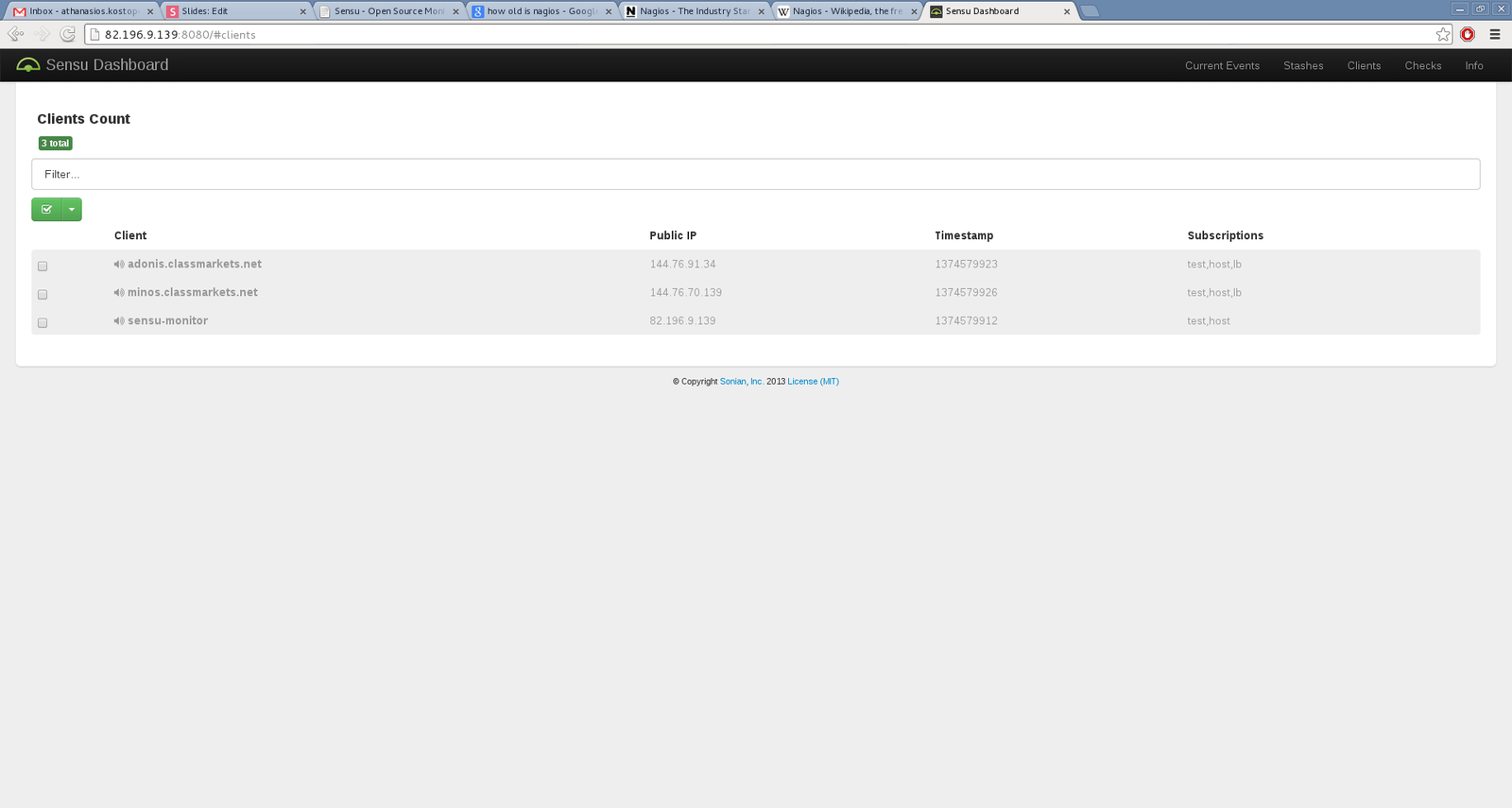 Sensu's web based GUI
