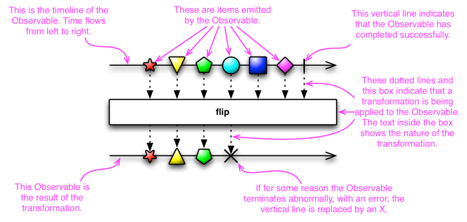 - Subscribing multiple times to a transformed observable makes the transform chain being traversed for each subscription: it actually subscribes to the source, before any transformation.