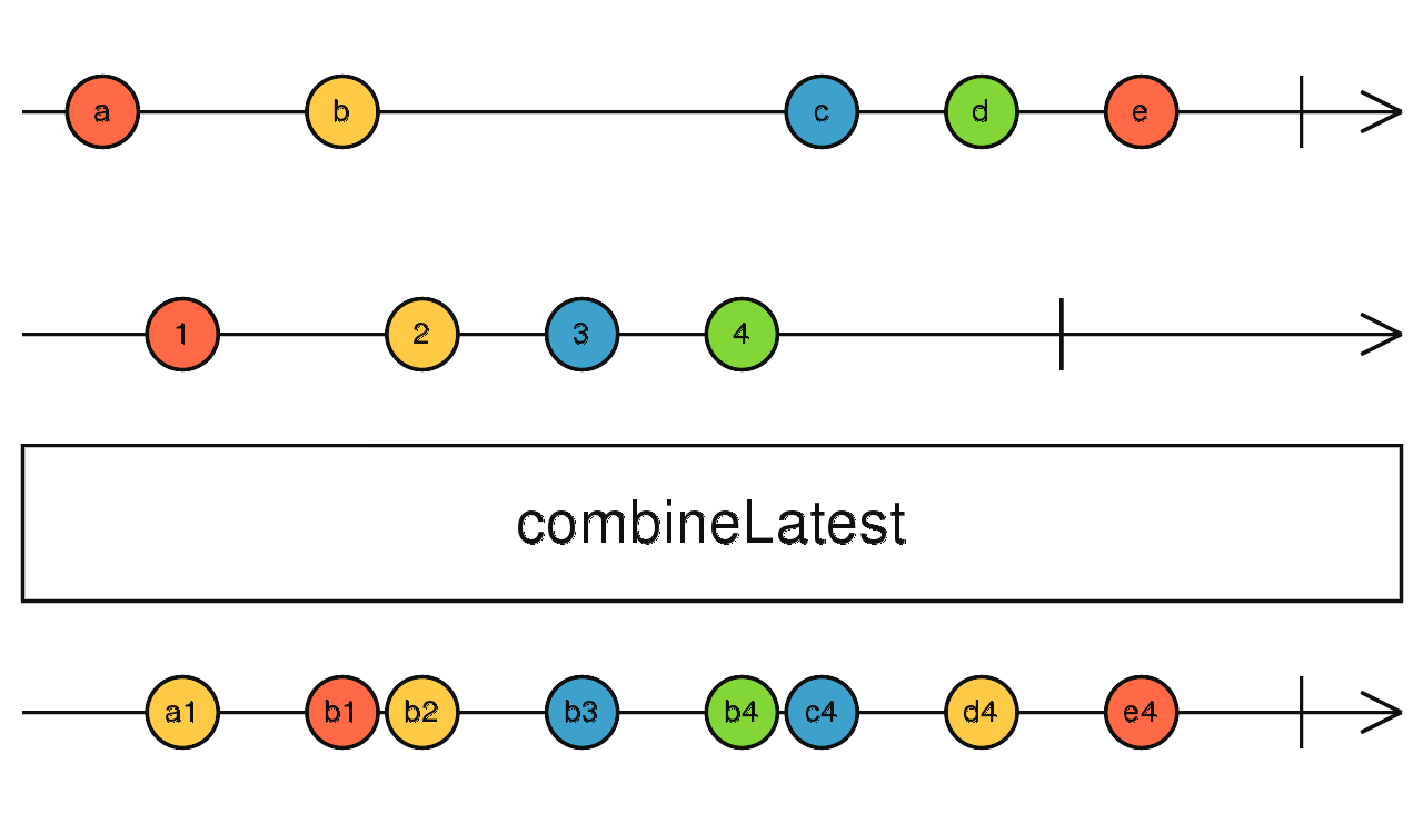 Some combination operators emit combined values of combined observables if all of them has emitted at least once