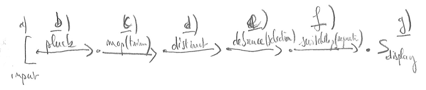 }b) Implement a function which takes a synchronous array and transform it to an observable