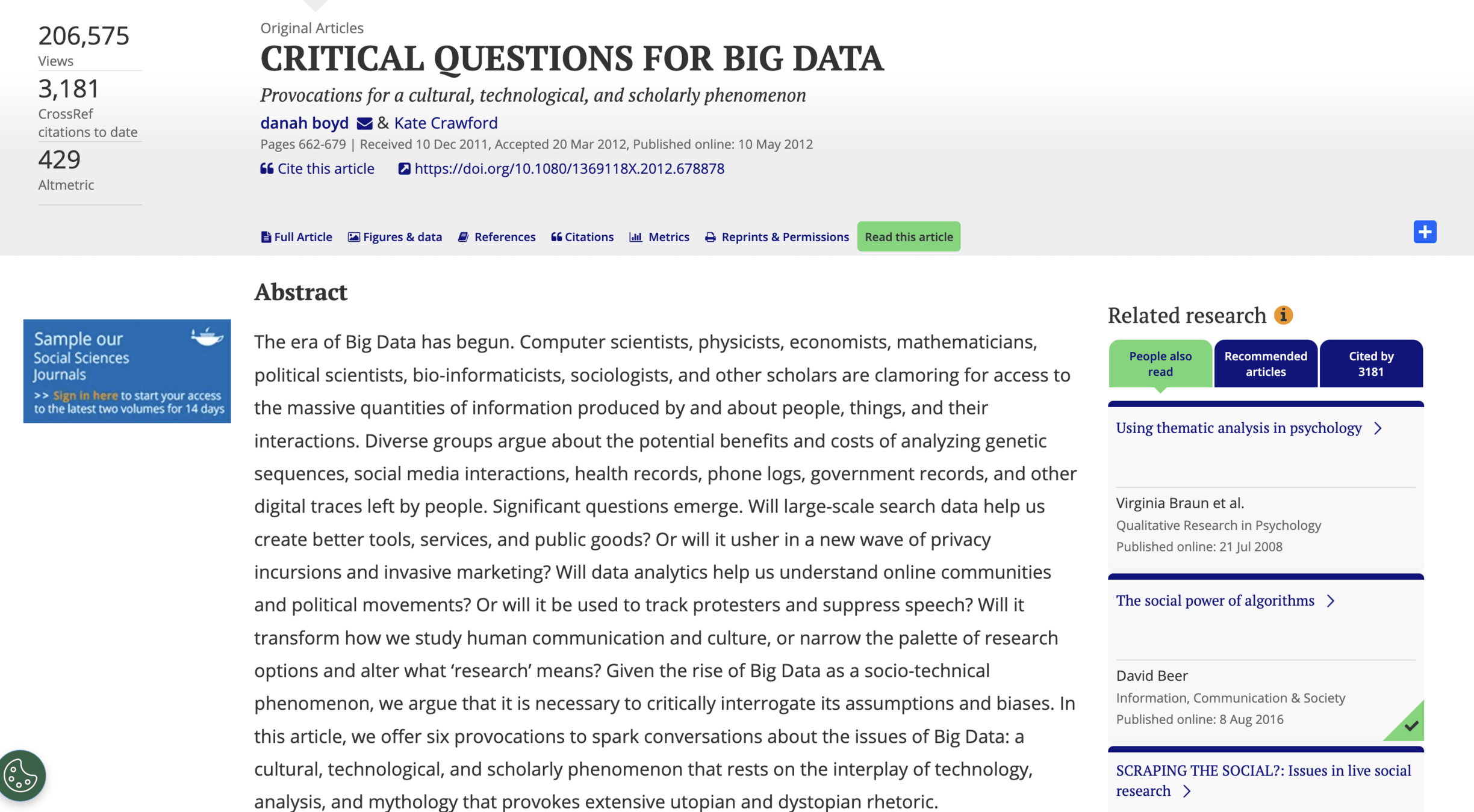 - challenges and debates the claims related to big data on epistemological, methodological and moral grounds